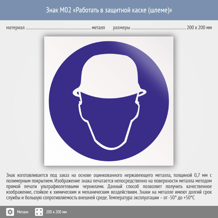 Знак M02 «Работать в защитной каске (шлеме)» (металл, 200х200 мм) в Петропавловске-Камчатском купить